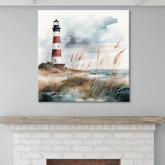 STRIPED BEACON Gallery Wrapped Beach Wall Art on Canvas, Multiple Sizes, Fade-Resistant