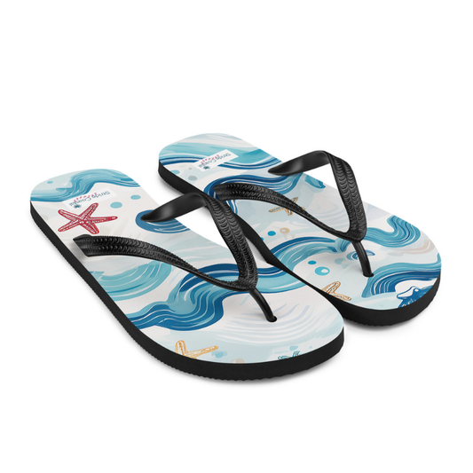 Ocean Stripes Rubber Sole Flip Flops, 3 Sizes, Everyday Style