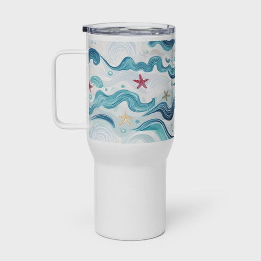 Curvy Waves Stainless Steel Tumbler with Handle, 25 oz, Insulated