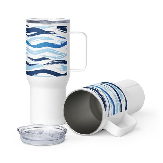 BLUE WAVES, Travel mug with a handle, 25 ounces