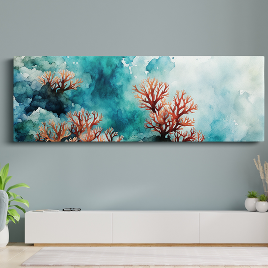 COASTAL CORAL Gallery Wrapped Beach Wall Art on Canvas, 20" x 60", Fade-Resistant